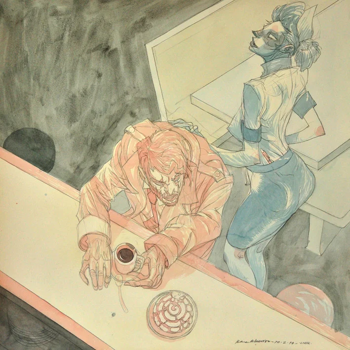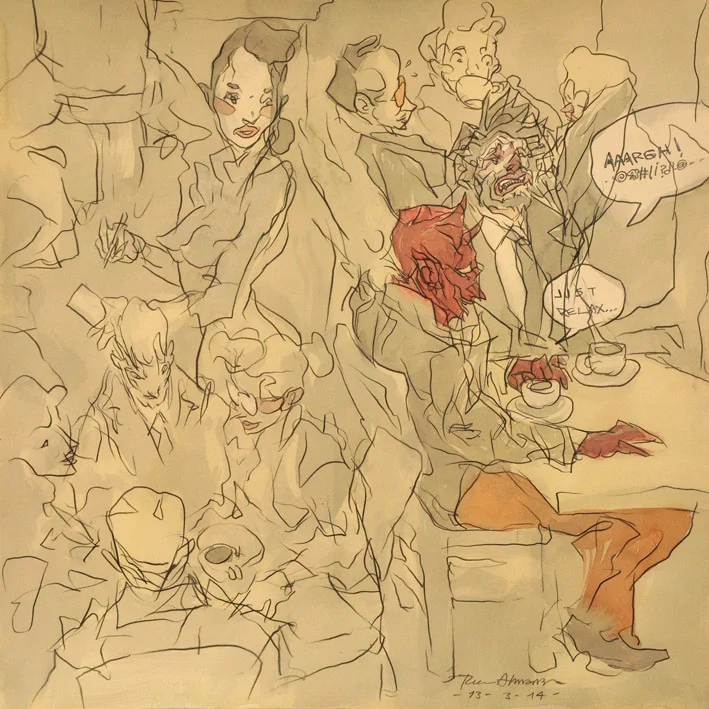 (DETALLE) En el Café Popular, acuarela y grafito sobre papel de algodón, Landscape series, 2014.