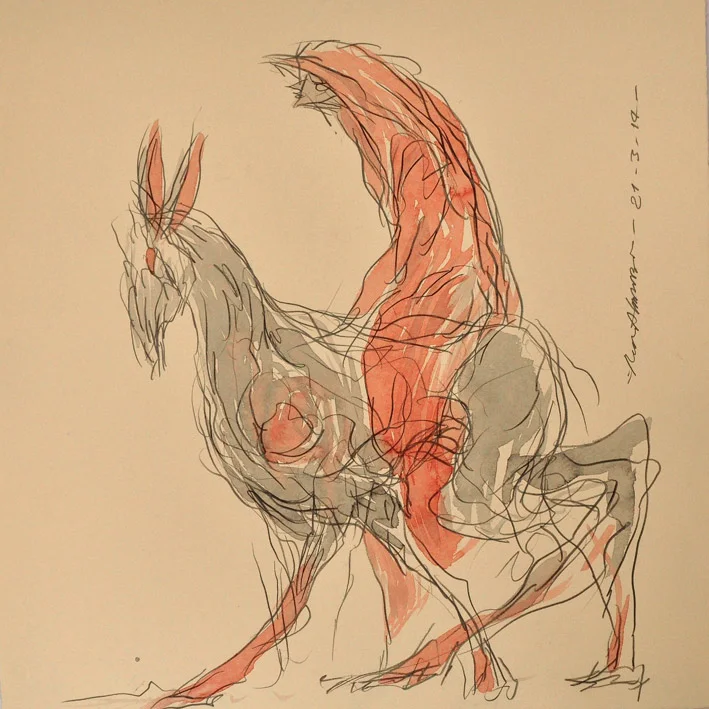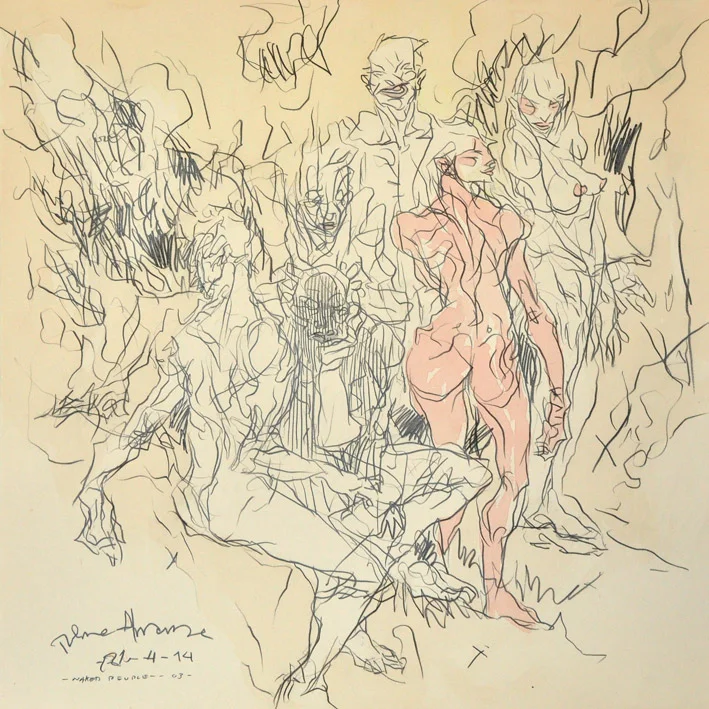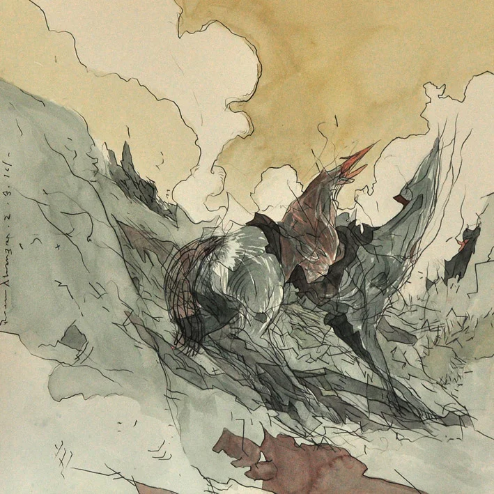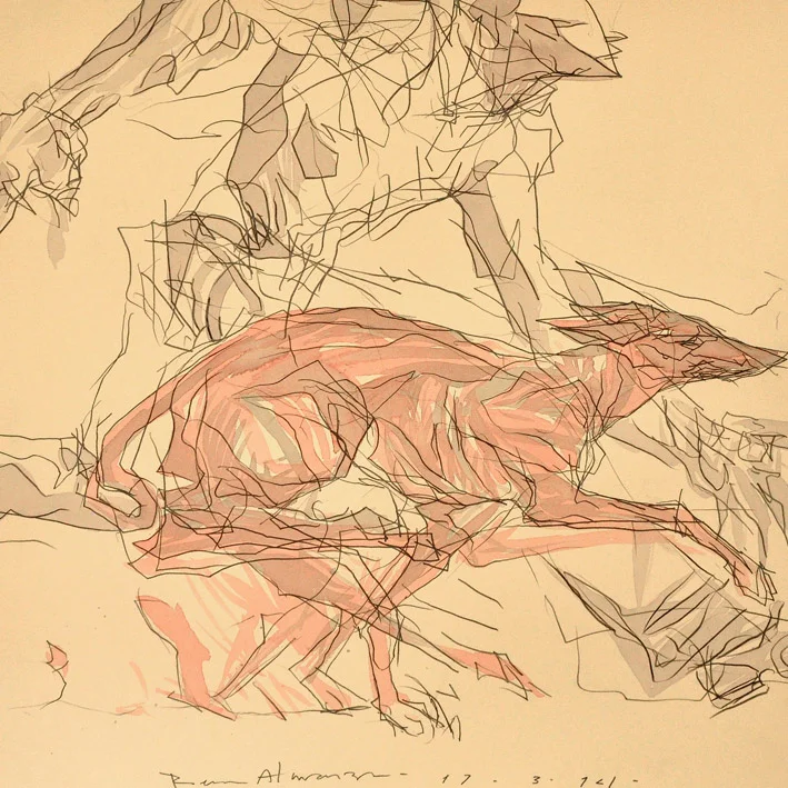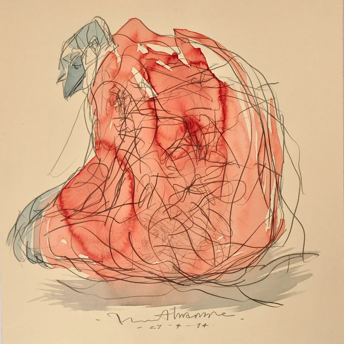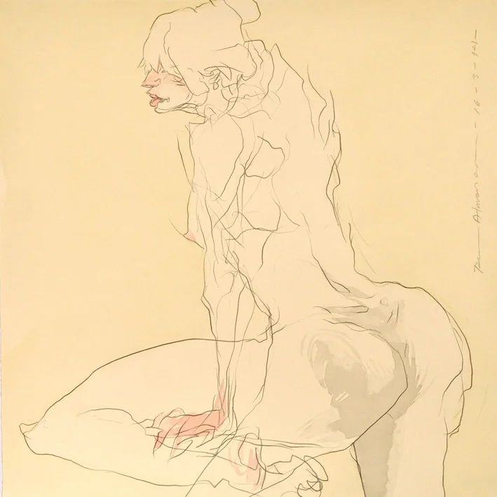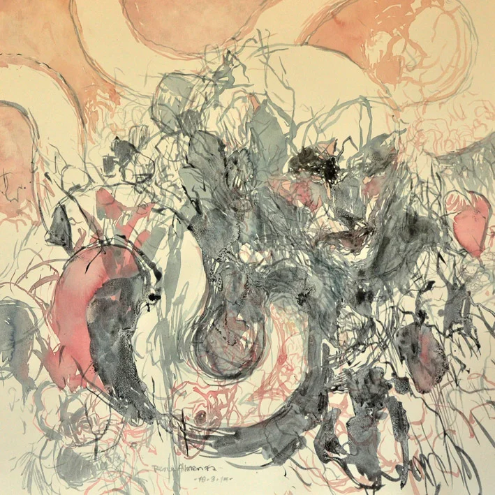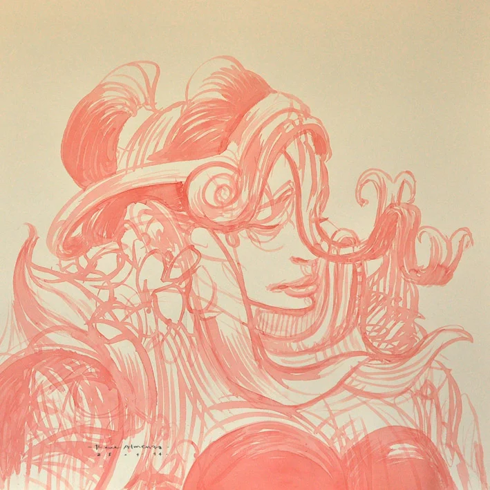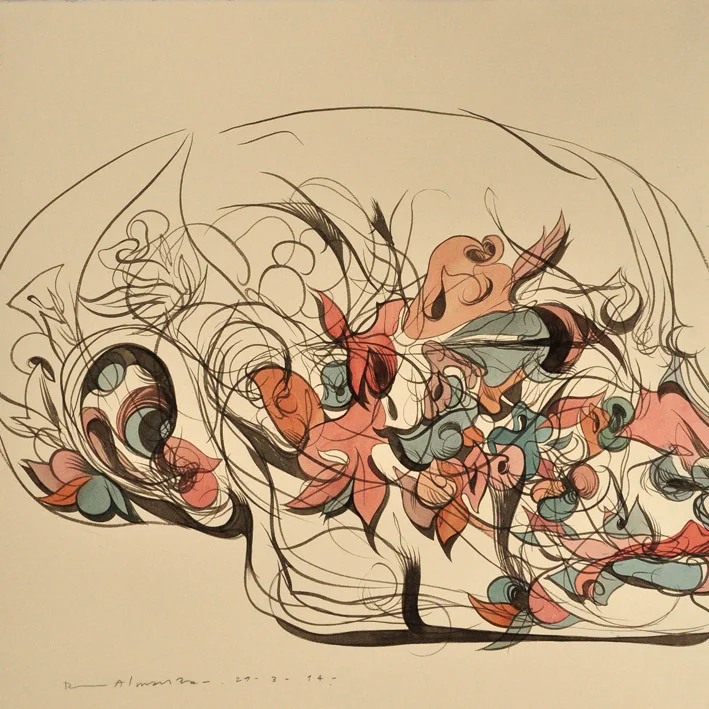 Almanza ve el acto de dibujar como una manera de ejercitar la mente. Empezó con un ejercicio de línea continua, en el que primero comenzaba a trazar antes incluso de pensar en una imagen específica, para que cuando esta llegara, fuera construida de inmediato.
