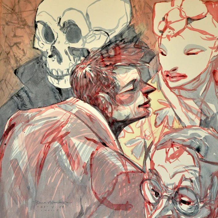 –Nos pusimos muy serios desde muy jóvenes –así resume Almanza su pronta familiarización con el arte secuencial, la tinta, el código de aterrizar imágenes en altos contrastes. A ello atribuye también que se haya orientado a la ilustración editorial desde muy temprano, trabajando con textos y conceptos.